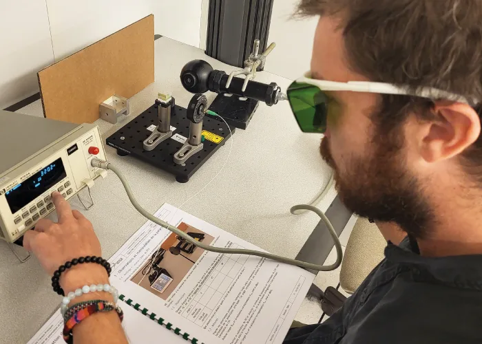 Pour appuyer la théorie, des travaux pratiques ont eu lieu sur les fonctions optiques des composants fibrés utilisés dans le montage de systèmes lasers, ainsi que sur la polarisation, les fibres à maintien de polarisation, et la mesure des paramètres qui leur sont liés. Par ailleurs, d’autres TP sur certains bancs de caractérisation de Keopsys (groupe Lumibird) sont venus parfaire la formation.
