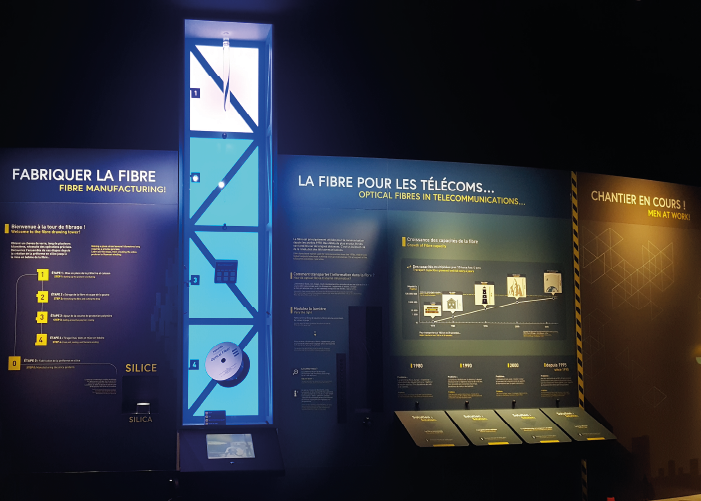 C’est donc tout naturellement que Photonics Bretagne a fortement contribué à la construction de l’exposition sur la fibre optique afin d’expliquer les étapes de sa fabrication via notamment à la reproduction en miniature d’une tour de fibrage et à la réalisation d’un film pédagogique (en ligne sur notre chaîne Youtube).