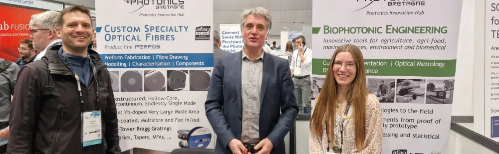 La forte fréquentation dont a pu bénéficier notre équipe sur place, a permis de mettre en avant notre conception sur mesure de fibres optiques spéciales et composants, notamment nos revêtements métalliques récemment développés avec succès. Notre activité en ingénierie biophotonique a également été mise en lumière sur notre stand et via une présentation d’un poster « Spatial-frequency-domain hyperspectral microscopy ».